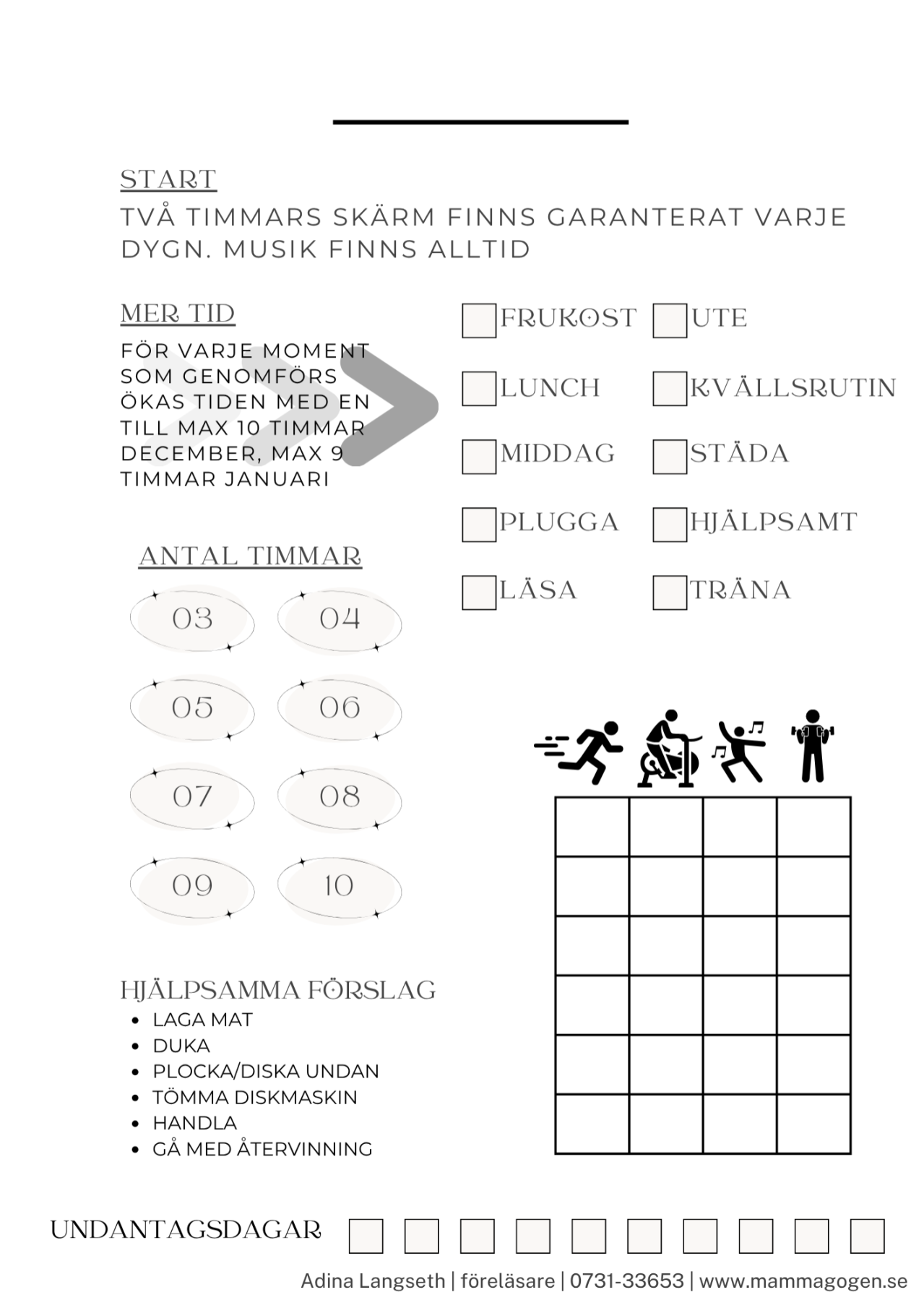 Byt skärmtid mot analoga aktiviteter med detta enkla system. Hjälper barn att hitta balans under lov och ledighet. Finns i färdig version eller anpassa själv efter era behov.